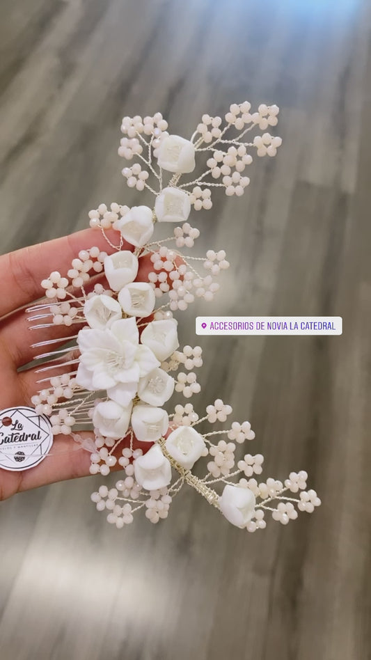 Con nuestras peinetas de novia, cada detalle de tu peinado estará impecable y lleno de encanto. Estas piezas no solo complementan tu look, si no que también se convierten en un recuerdo especial de tu día mas importante.