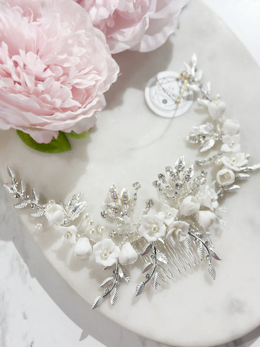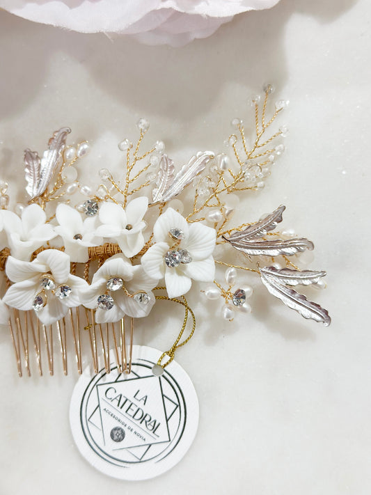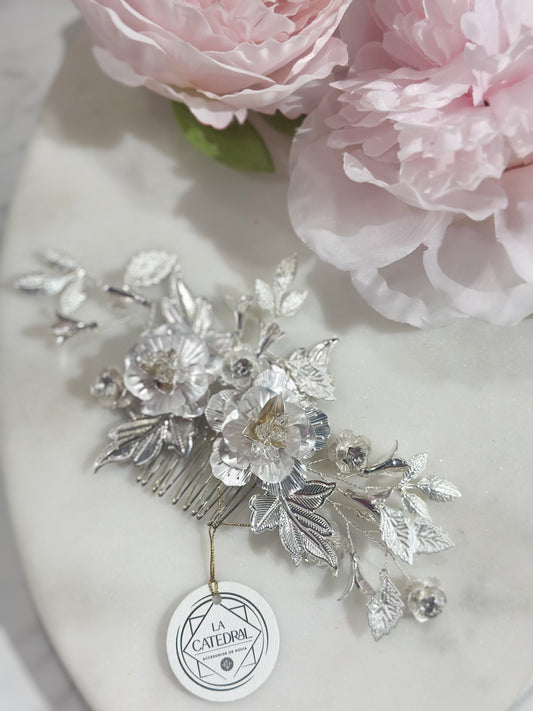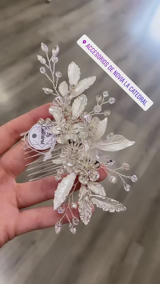 Con nuestras peinetas de novia, cada detalle de tu peinado estará impecable y lleno de encanto. Estas piezas no solo complementan tu look, si no que también se convierten en un recuerdo especial de tu día mas importante.