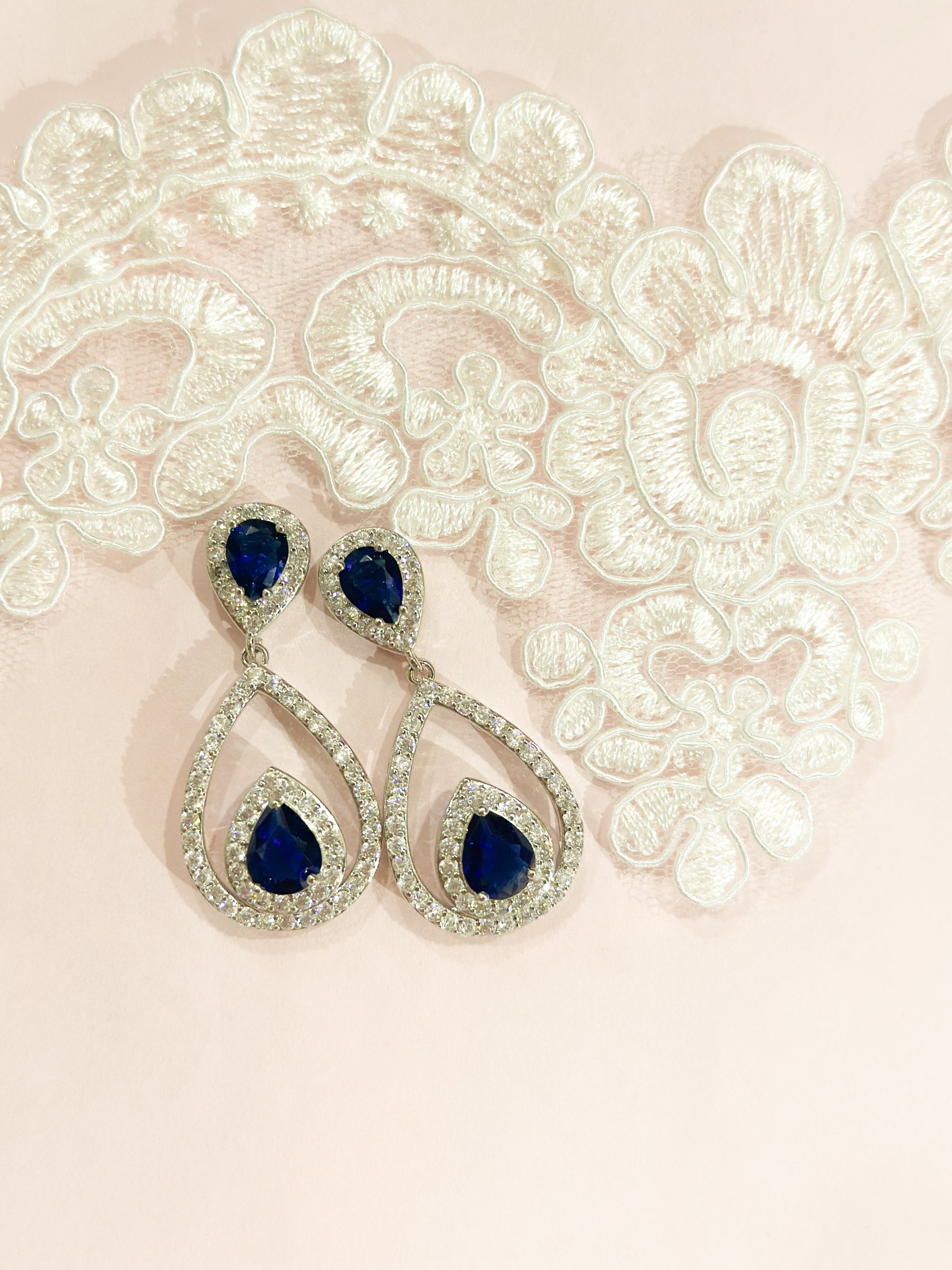 Tipo: Arete Largo doble gota con halo montado en aleación de acero inoxidable en baño de rodio