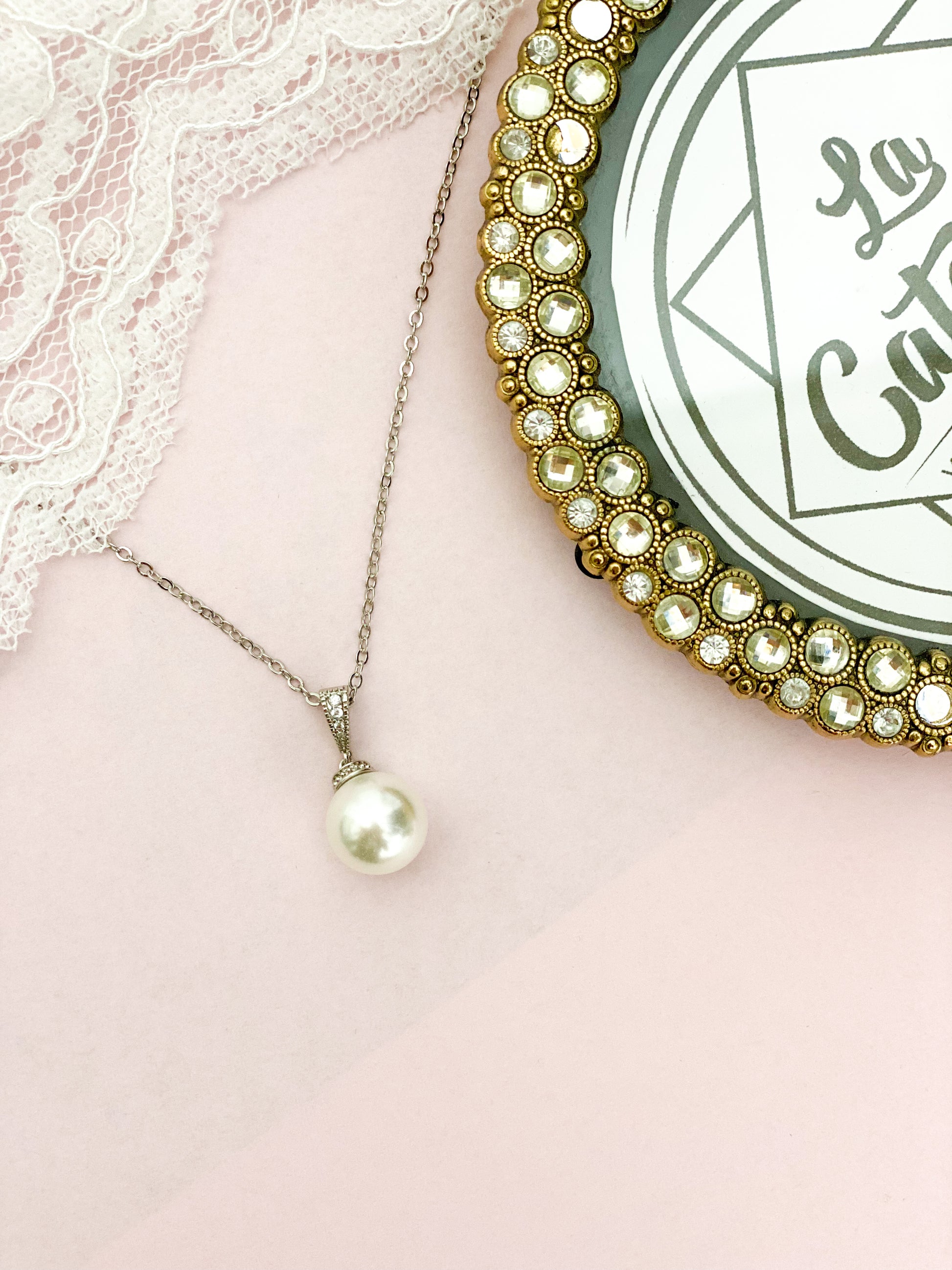 Material: Perla de rio sintetica con cadena en aleación de metal inoxidable en baño de rodio con zirconias chicas