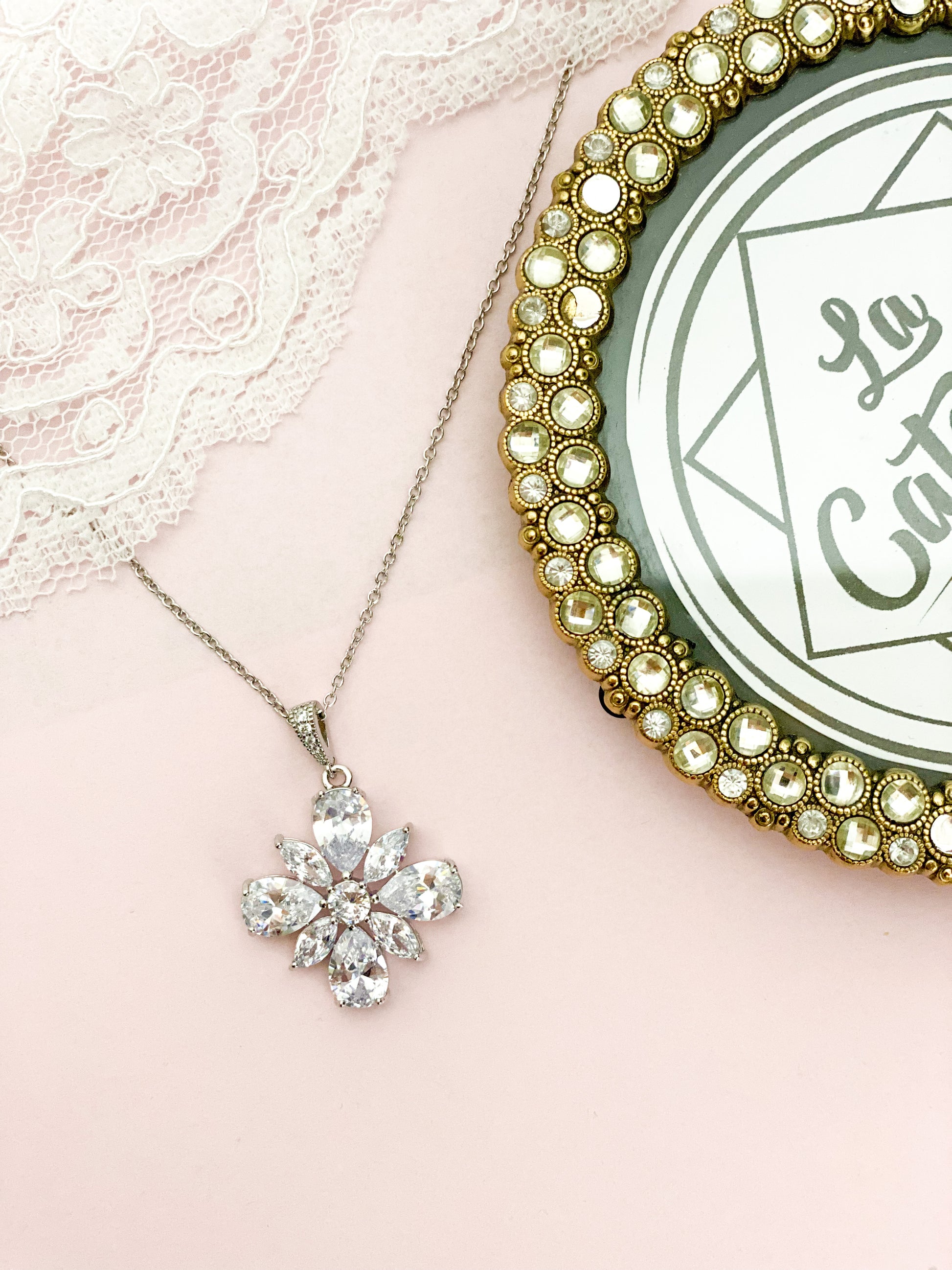 Material: zirconias grandes en forma de flor con cadena en aleación de acero inoxidable en baño de rodio