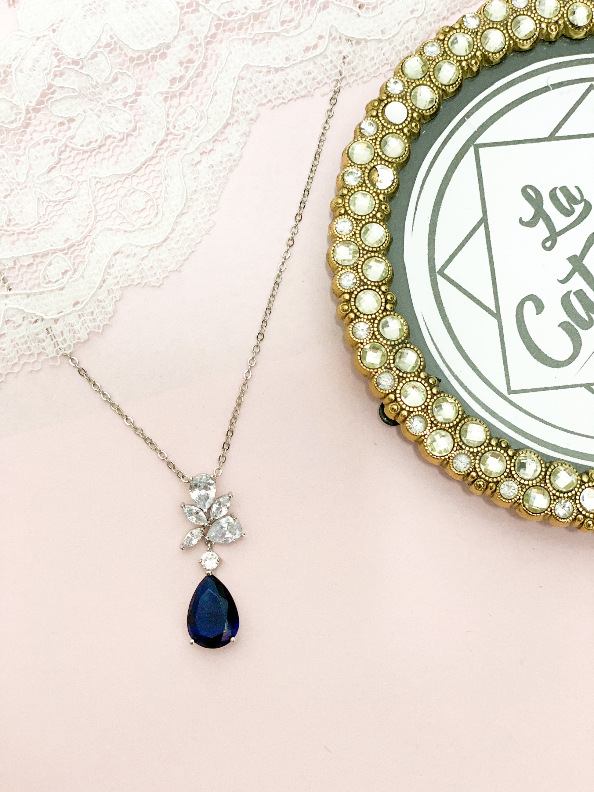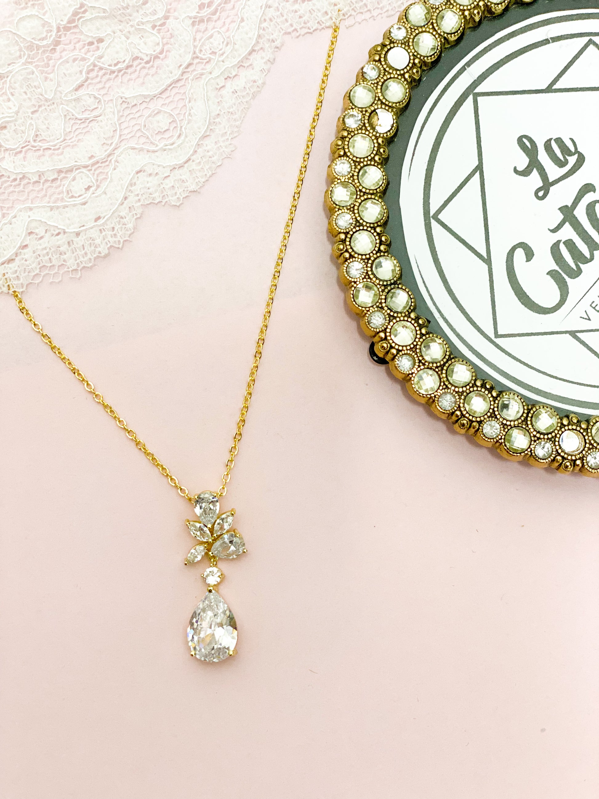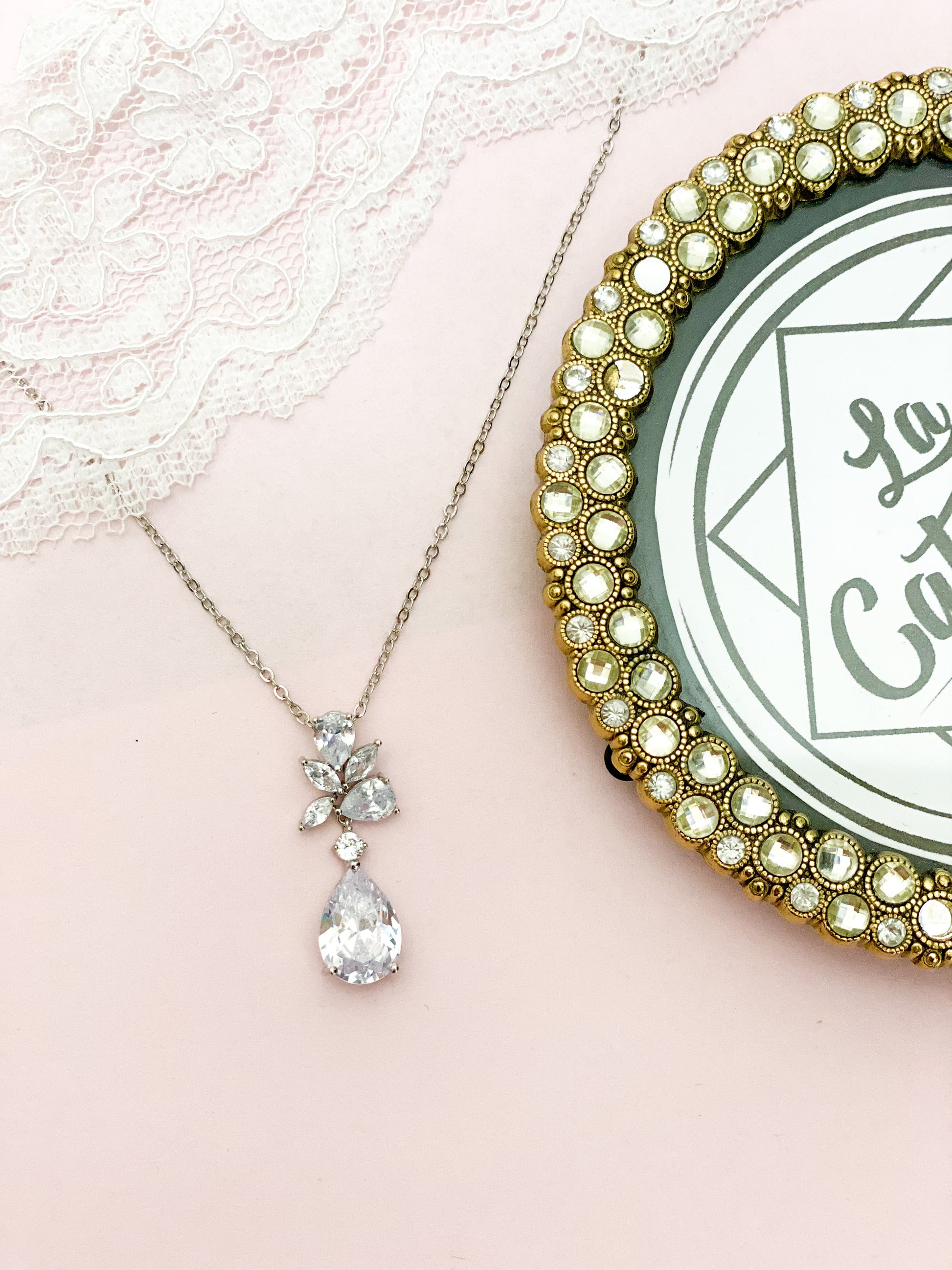 Material: Zirconias de hojas con gota grande sin halo con cadena en aleación de acero inoxidable en baño de rodio