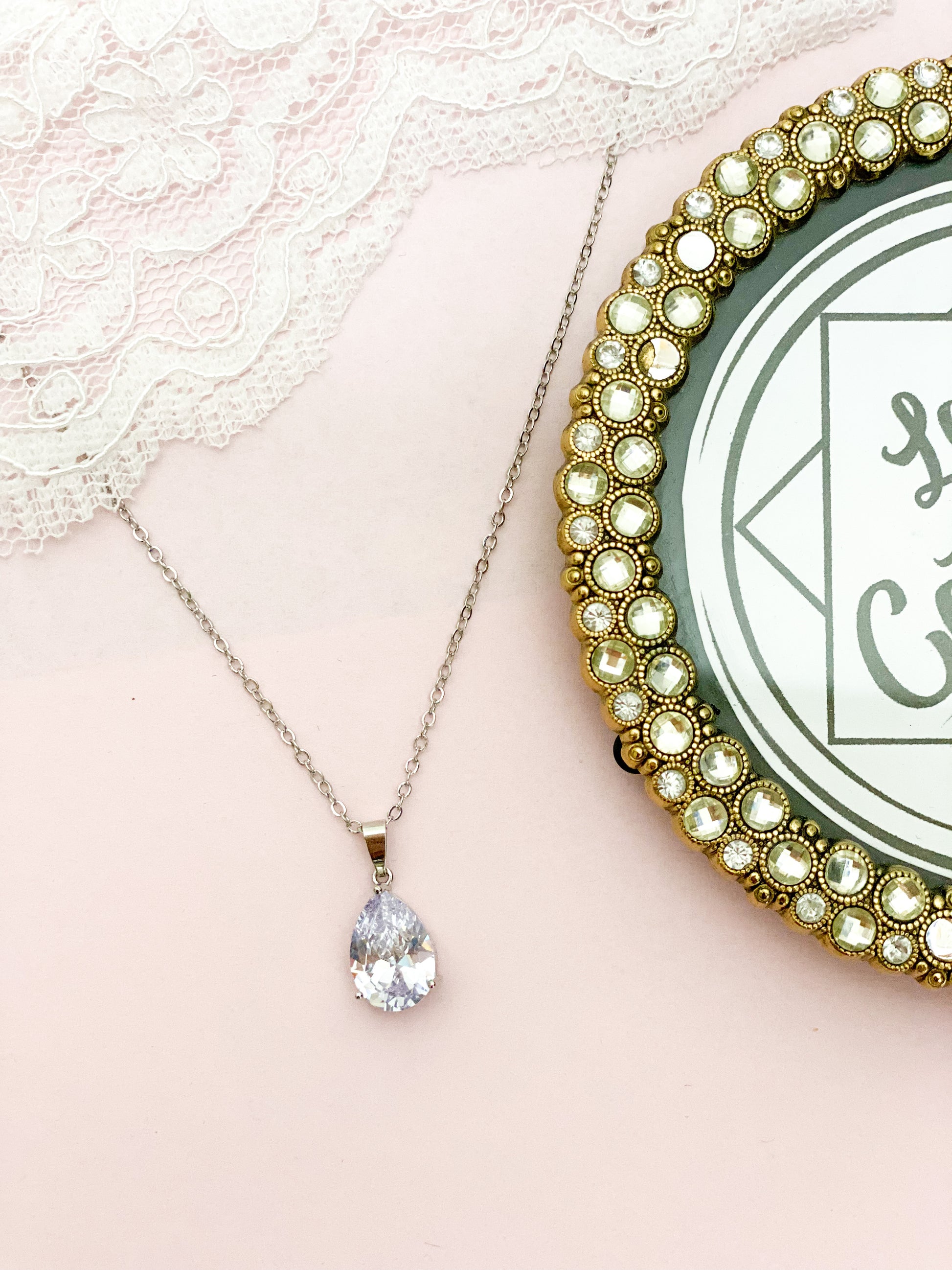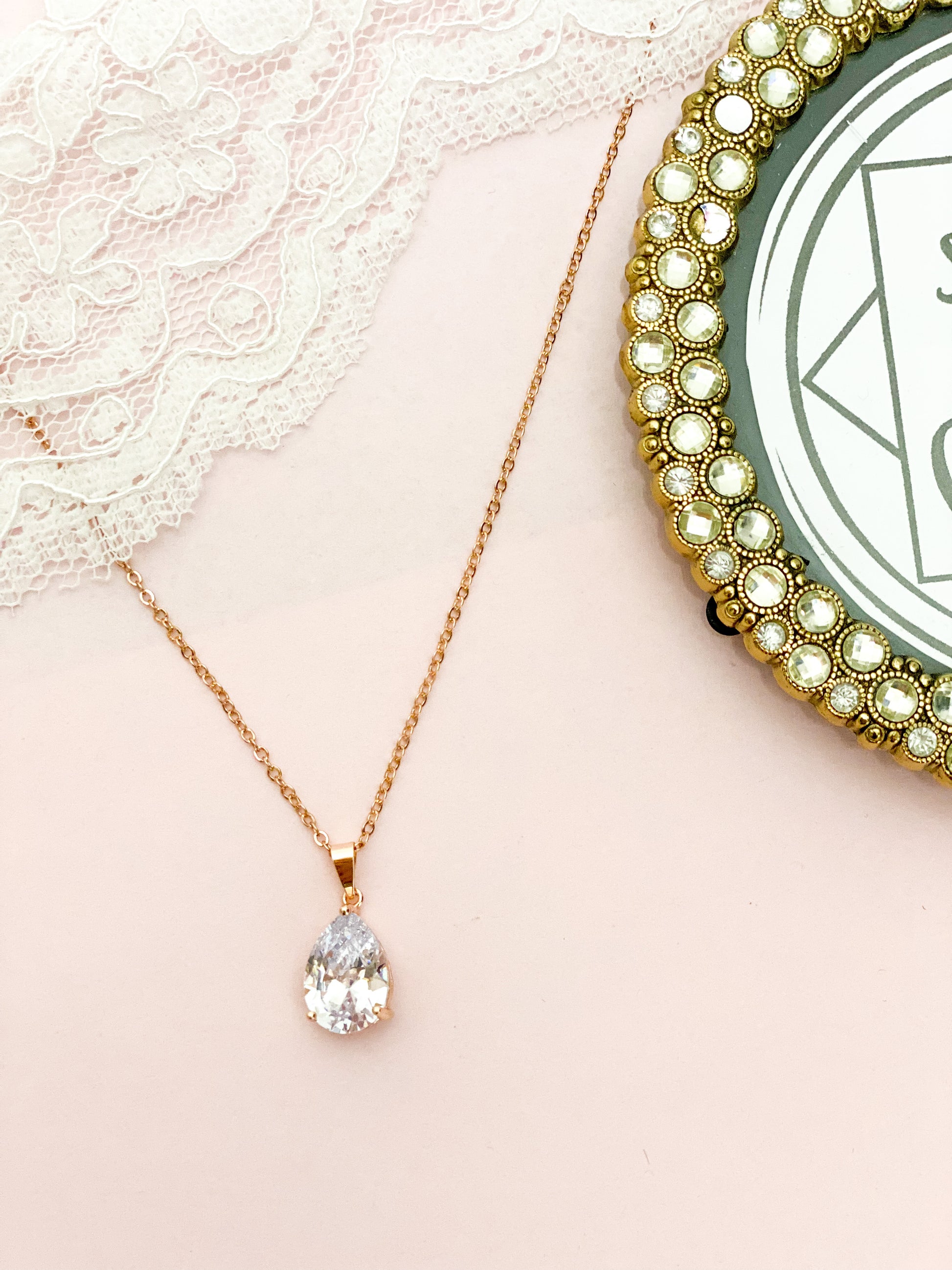 Material: Zirconia de gota sin halo con cadena en aleación de acero inoxidable en baño de rodio