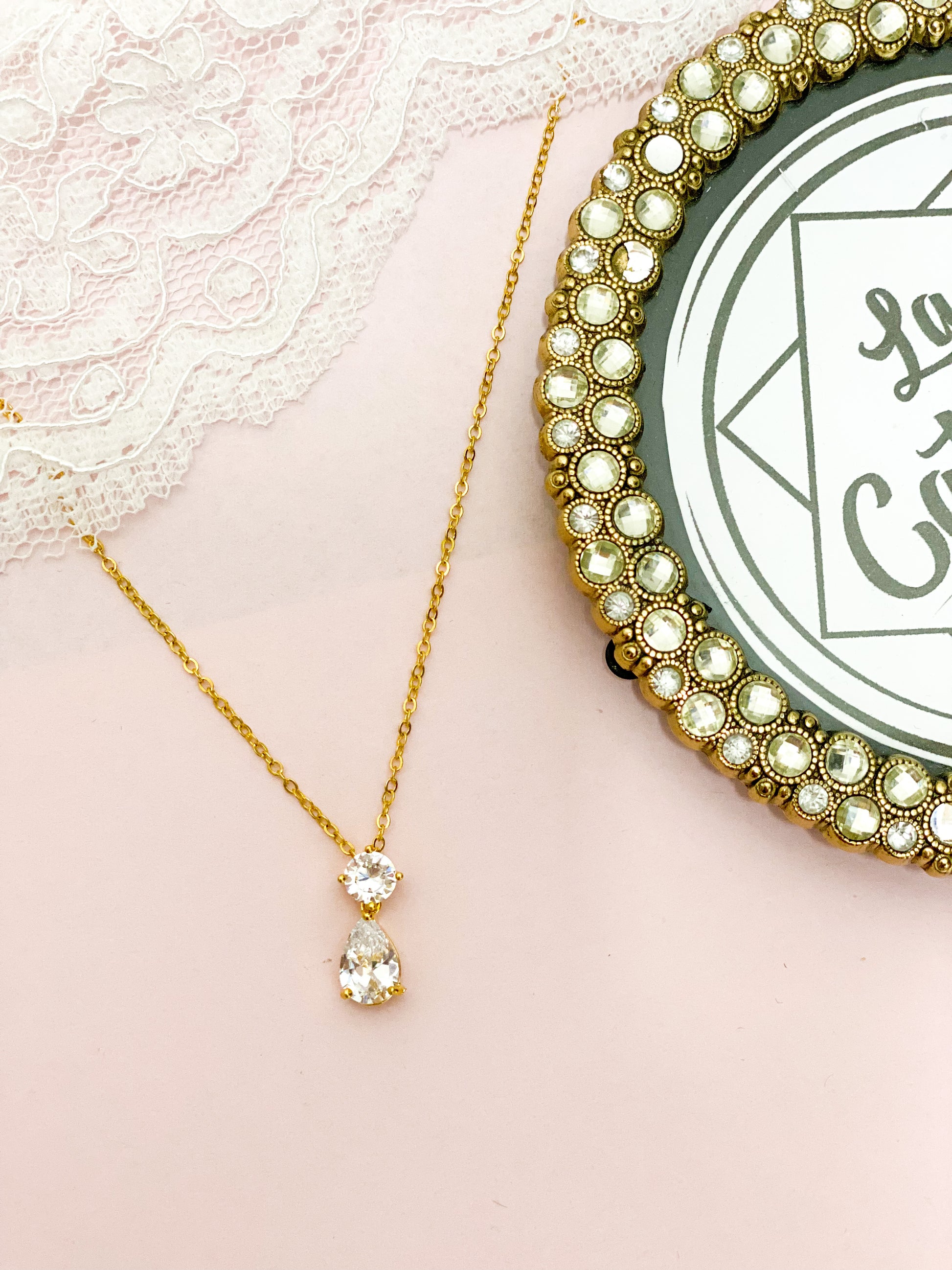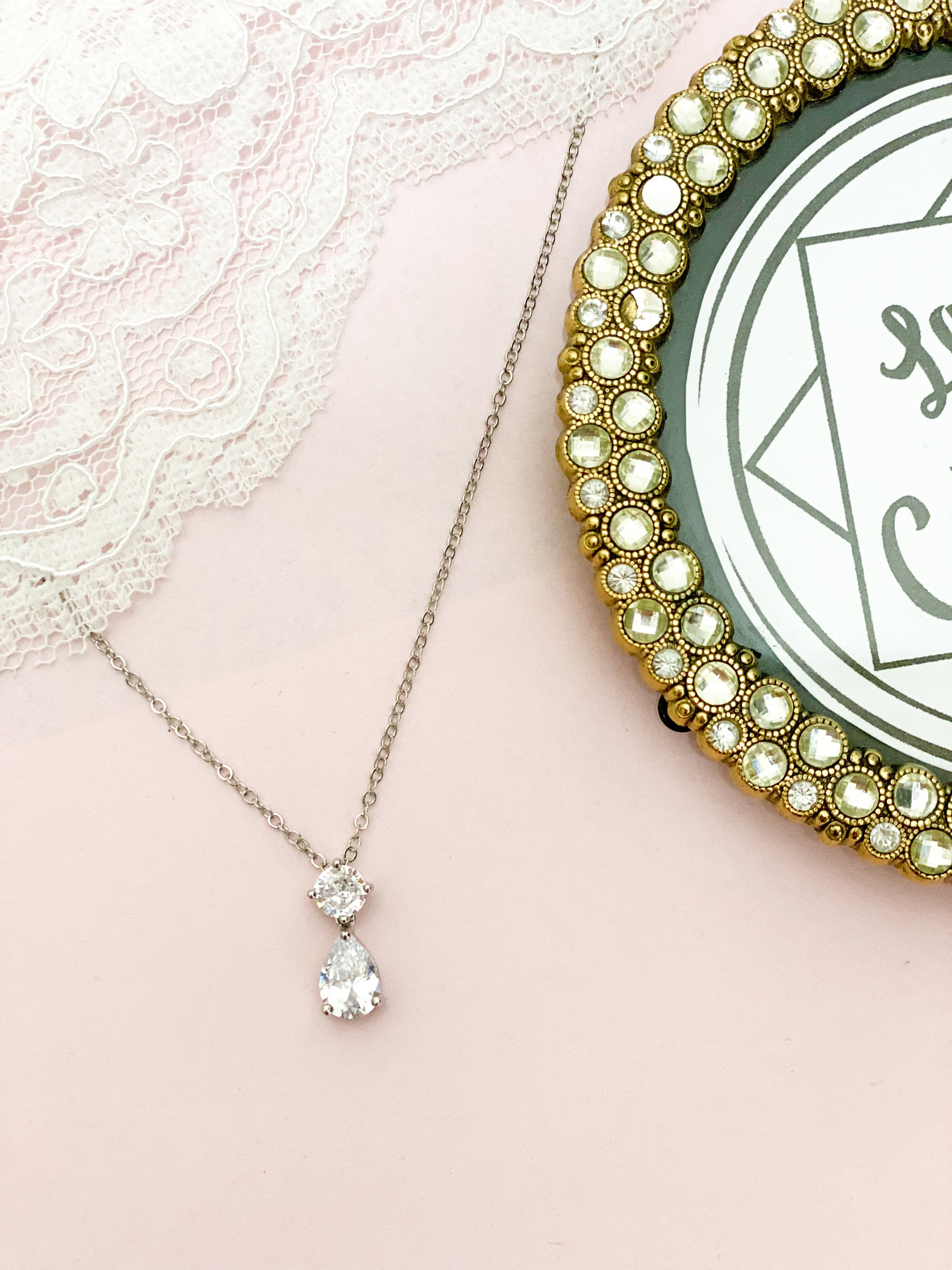 Material: Zirconias de gota y circulo exquisitas sin halo con cadena en aleacion de acero inoxidable en baño de rodio