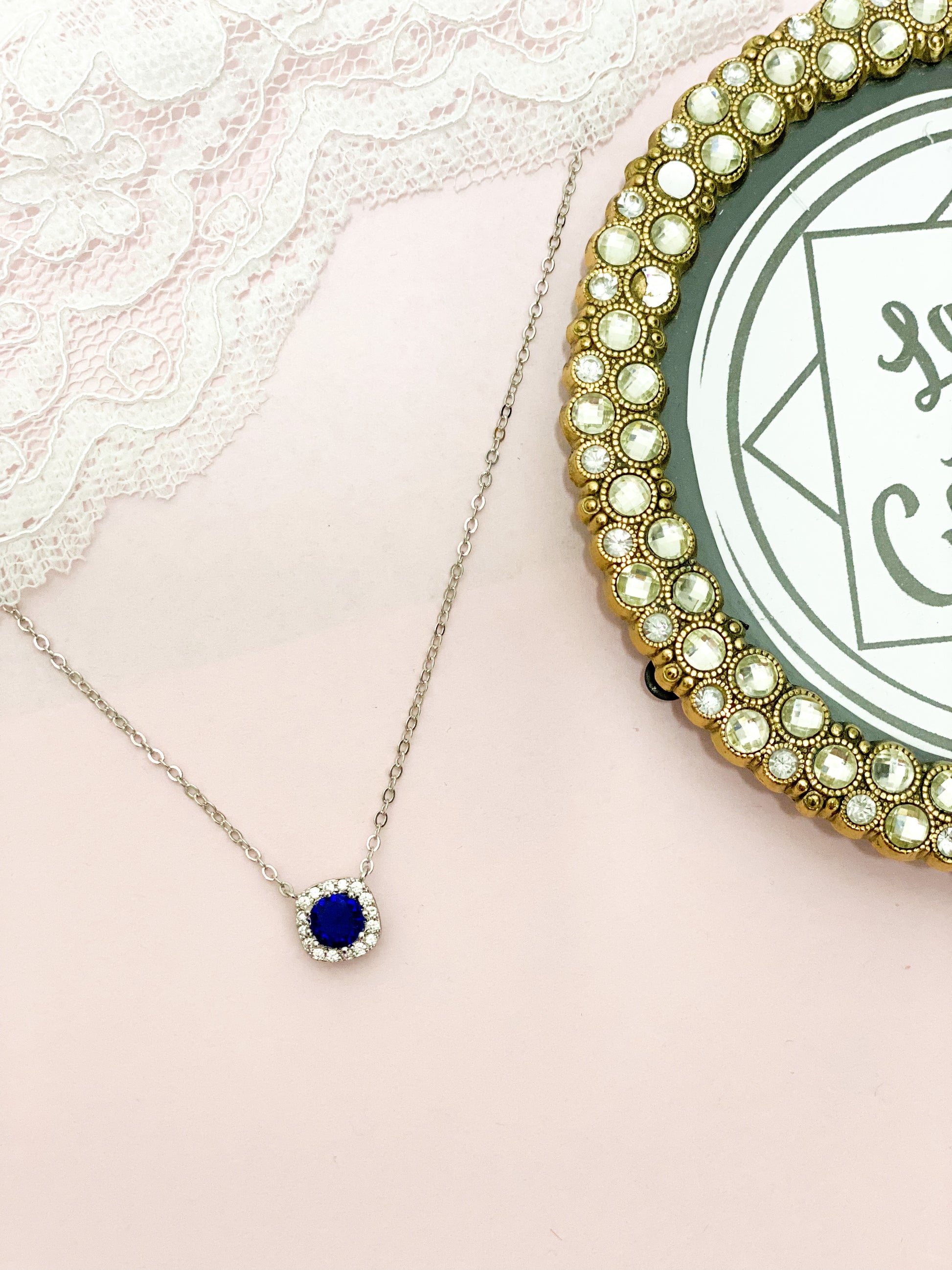 Material: Zirconia cuadrada chica con halo y cadena en aleación de acero inoxidable en baño de rodio