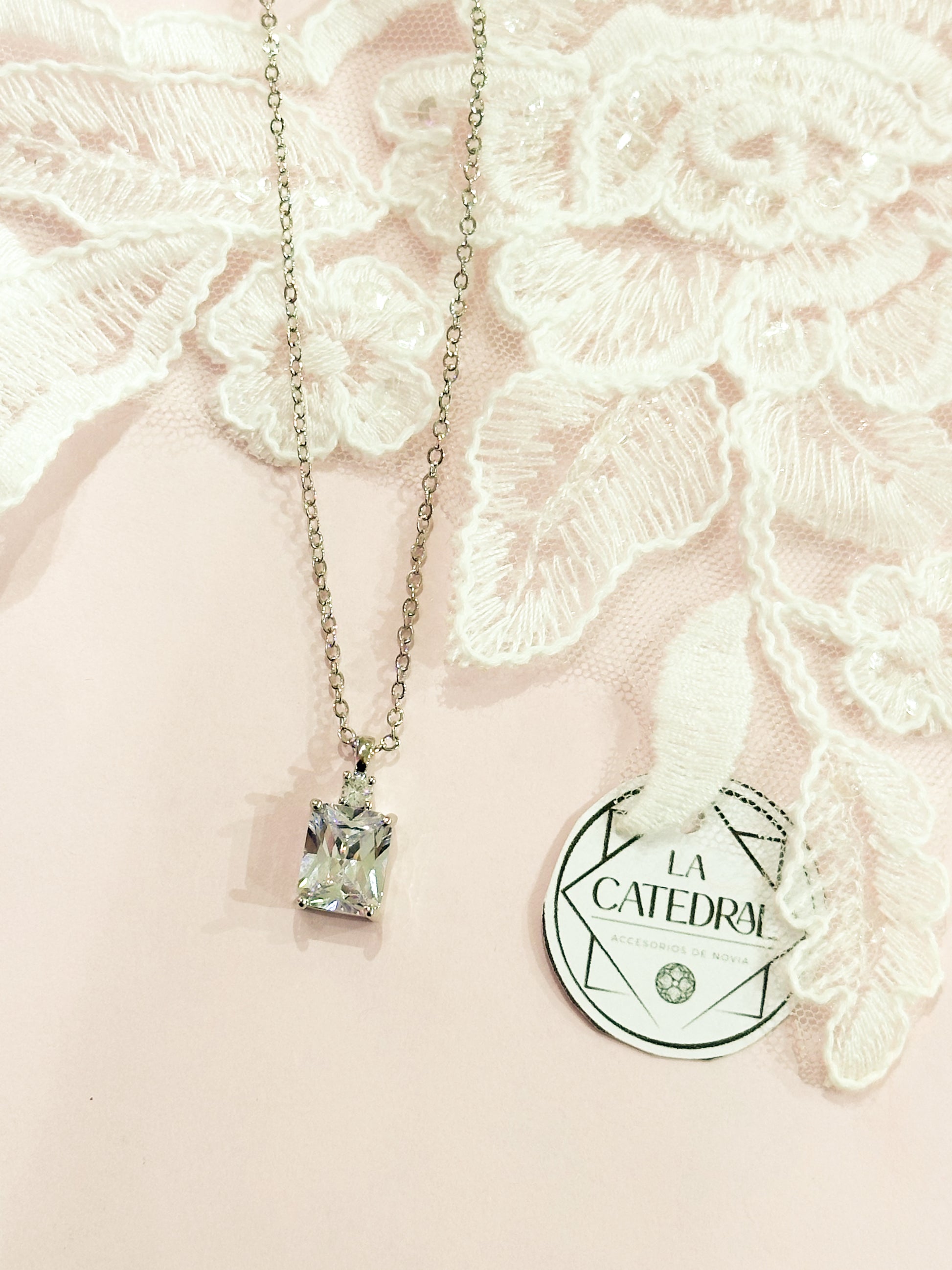 Material: Zirconia cuadrada sin halo con cadena en aleación de acero inoxidable en baño de rodio