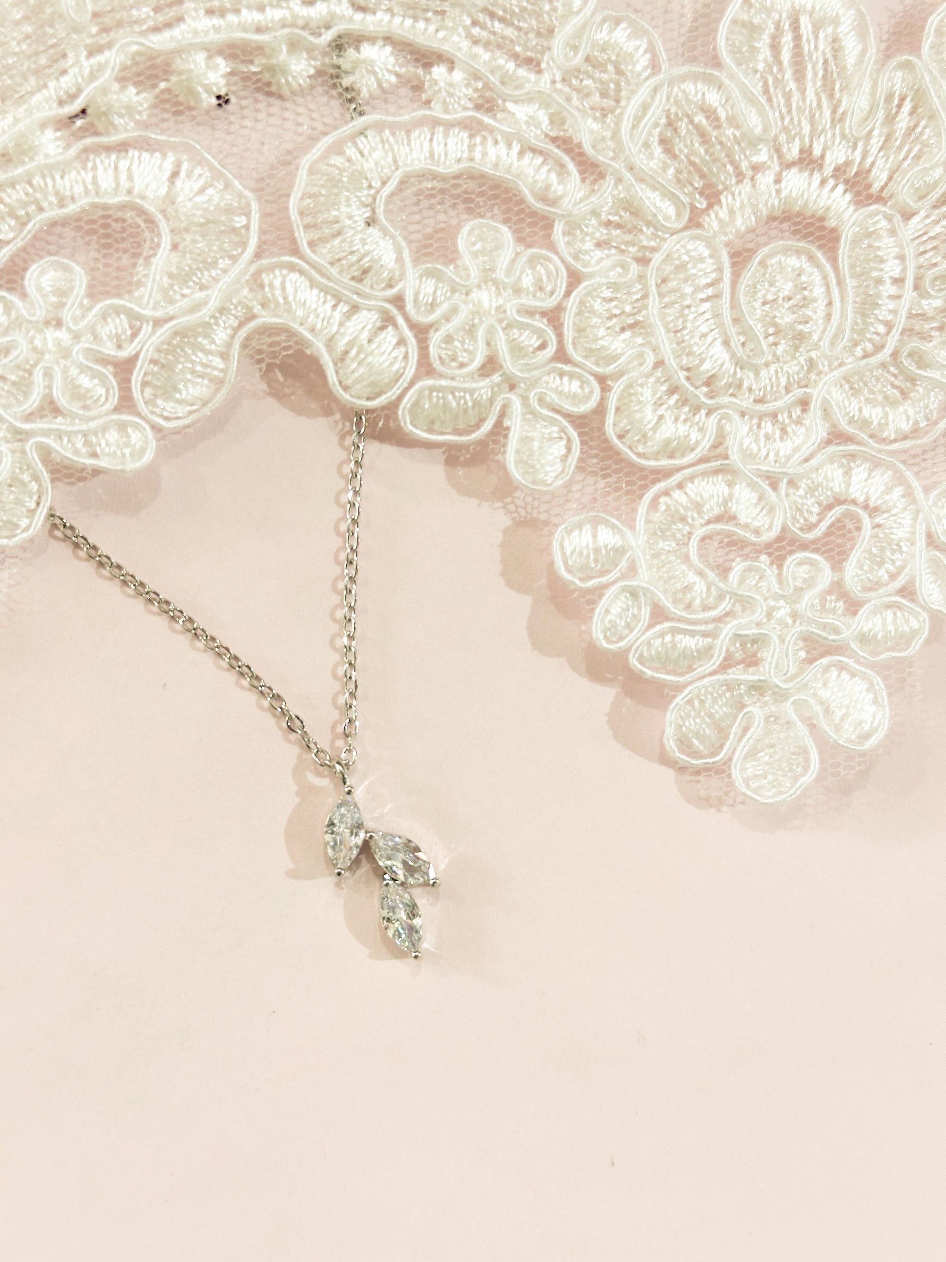Material: Zirconia en baño de rodio de hojas exquisitas con cadena en aleación de acero inoxidable en baño de rodio