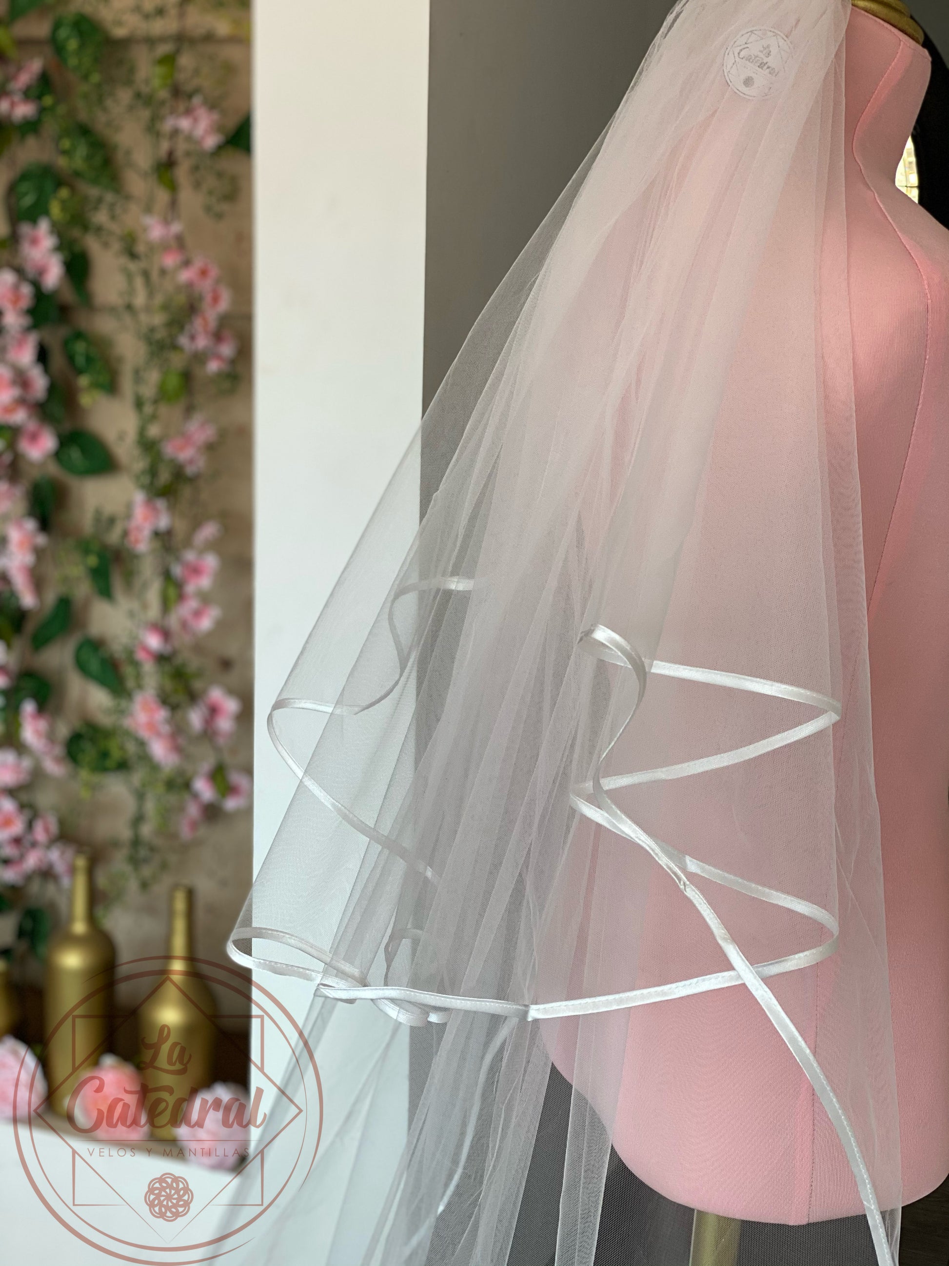 Tipo: Doble capa clásico liso con peineta y orilla de listón satinada en toda la orilla para crear un look tradicional y romántico