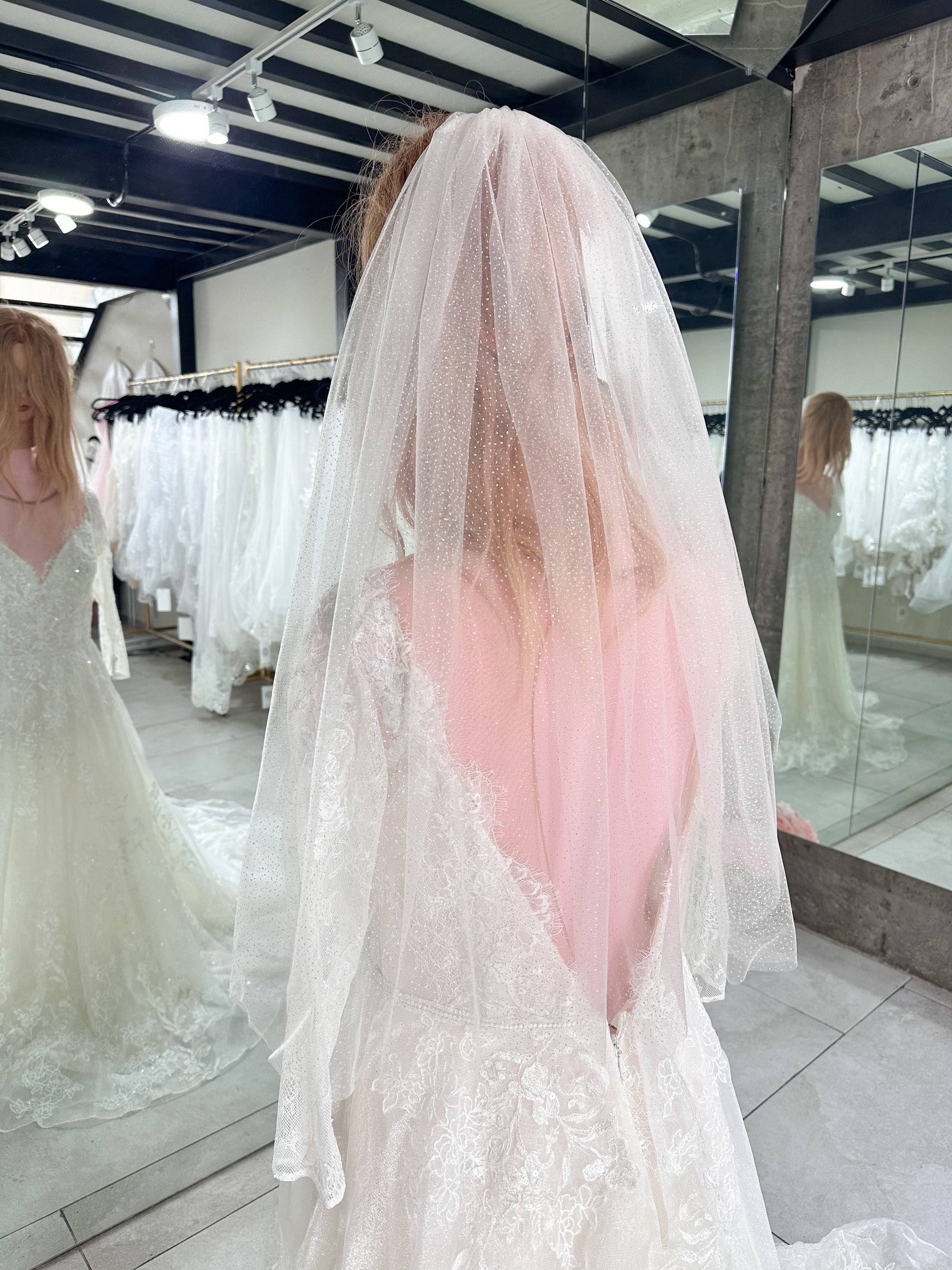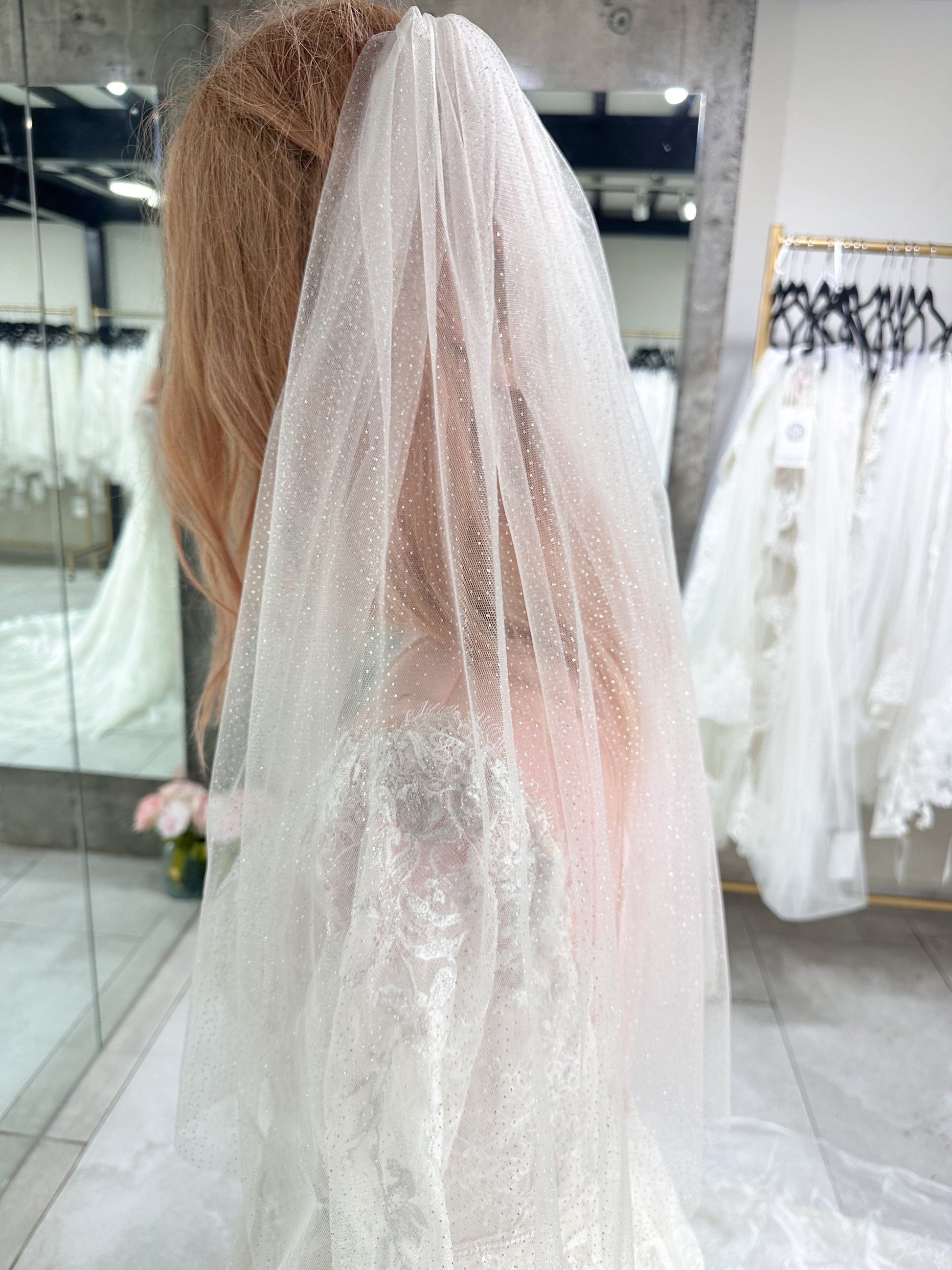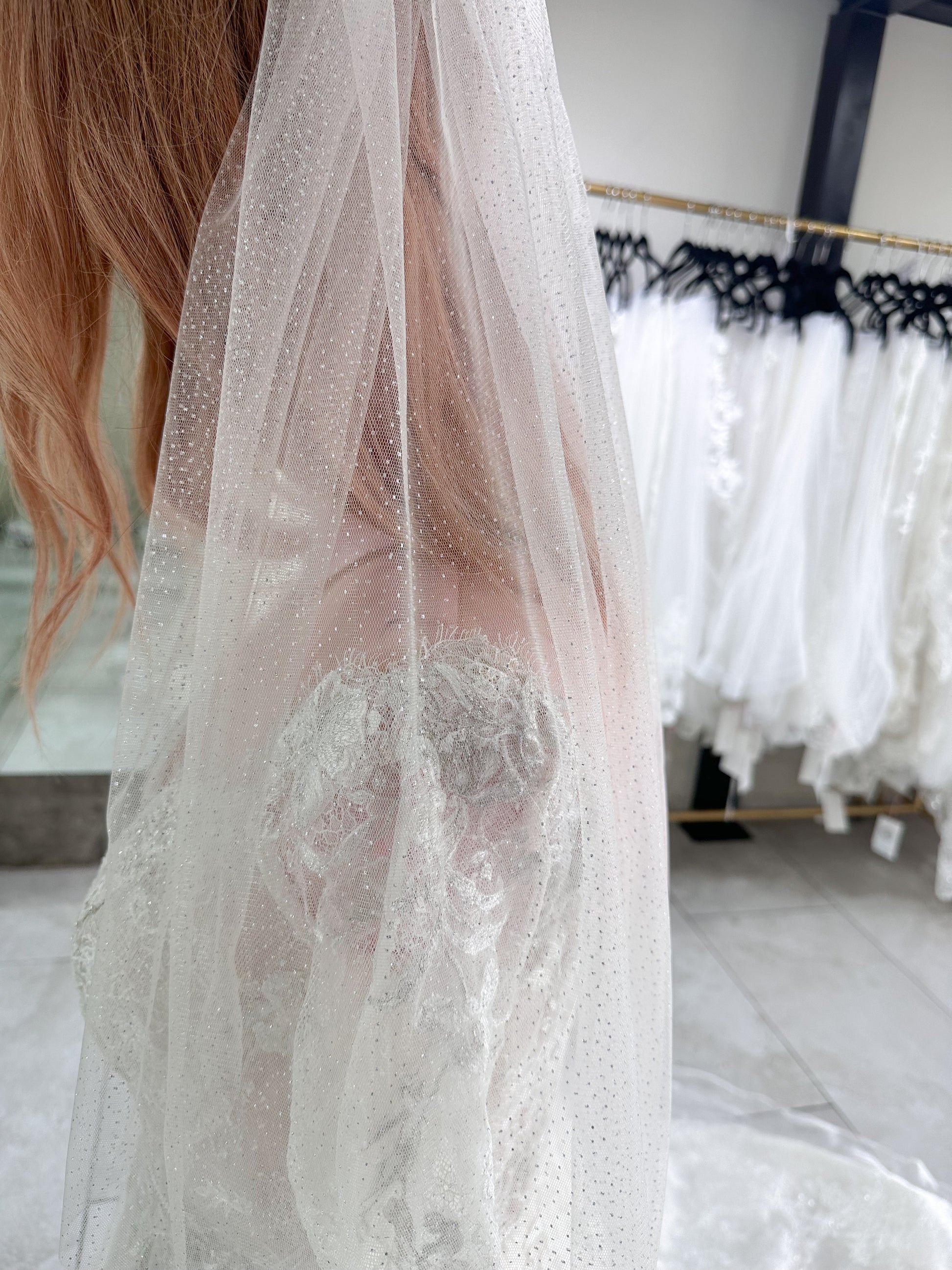 Tipo: Tulle de seda con peineta lleno de brillos en todo el velo