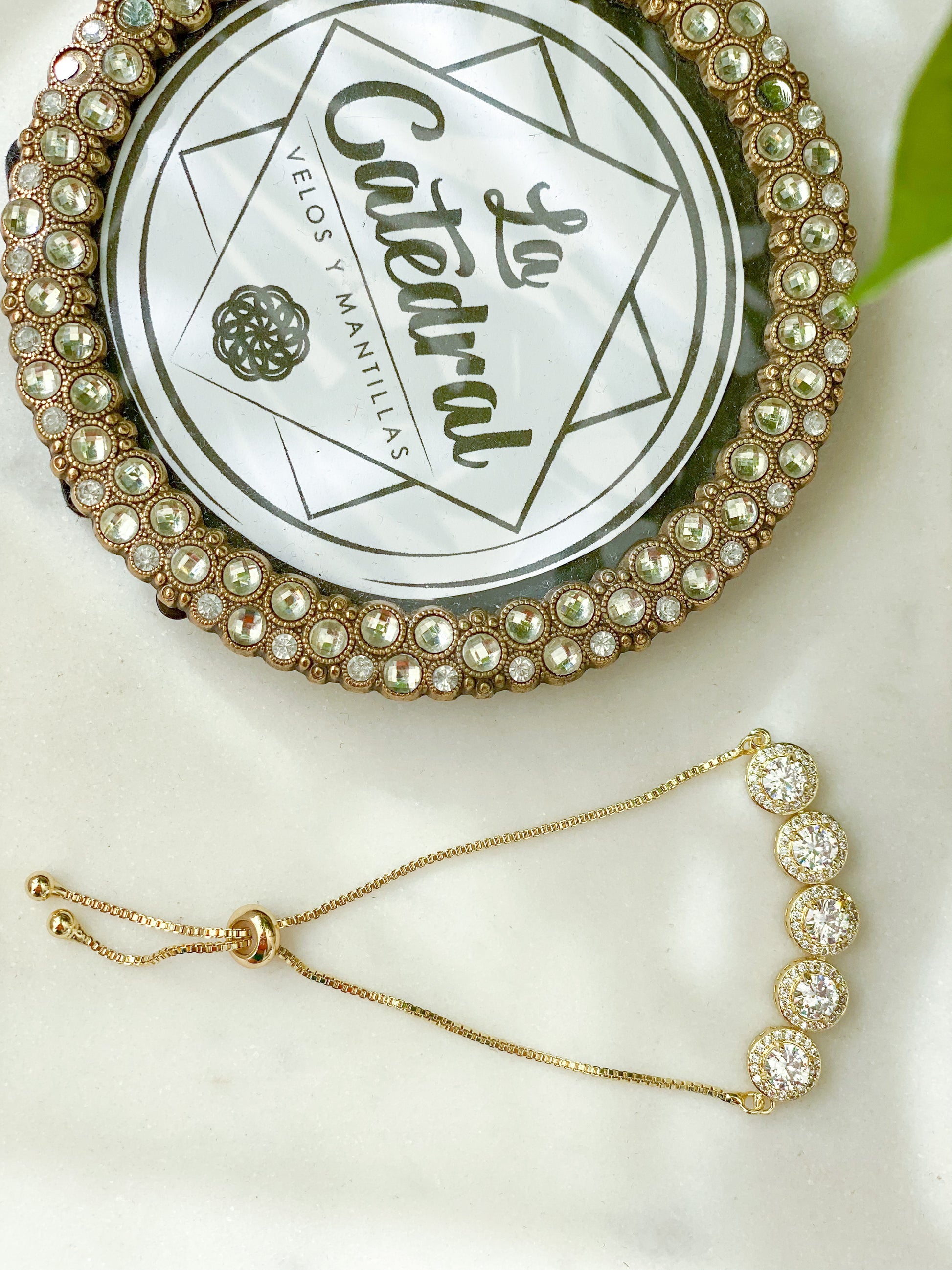 Material: Zirconias con forma circular y halo montadas en acero inoxidable en baño de rodio