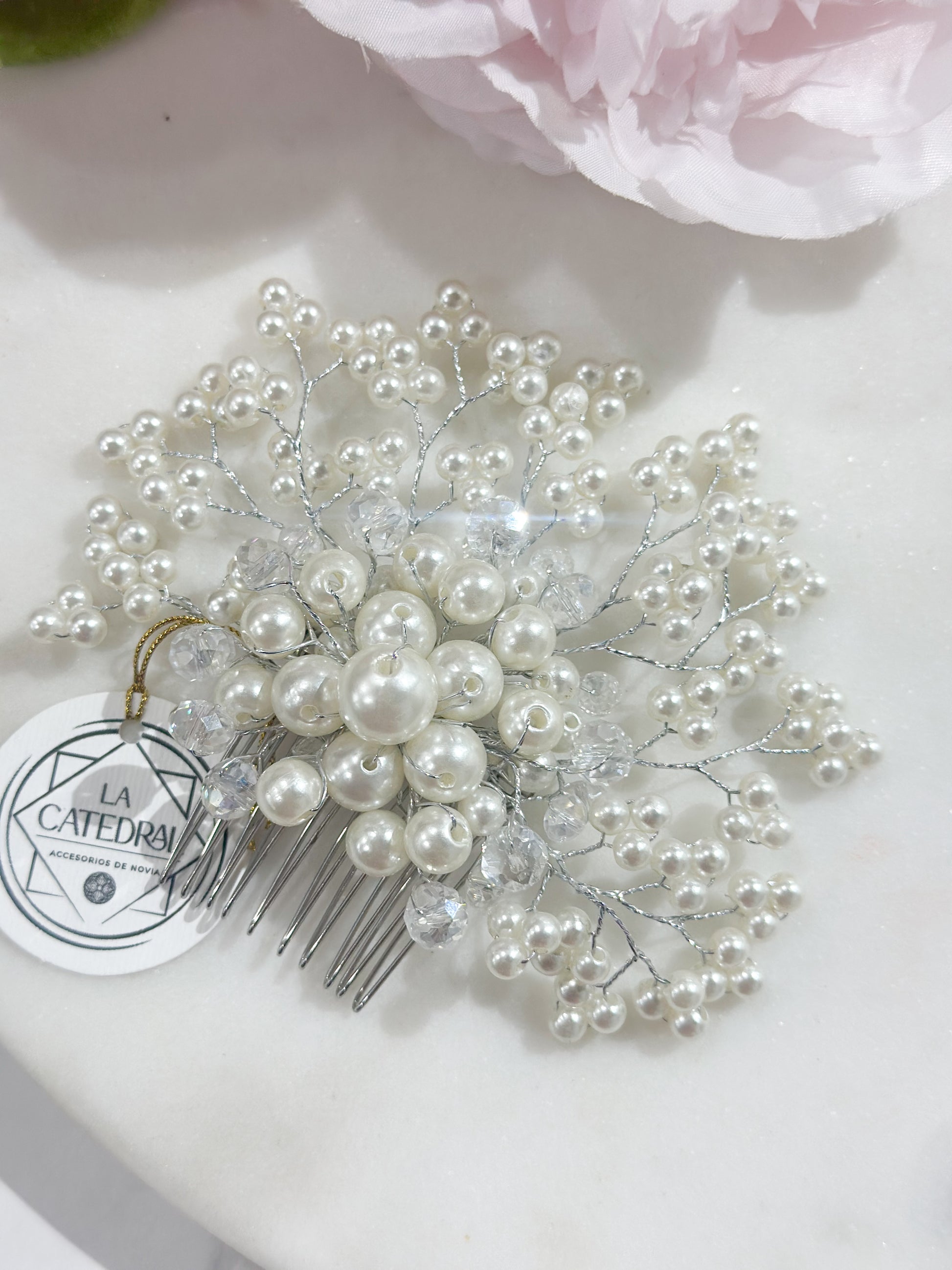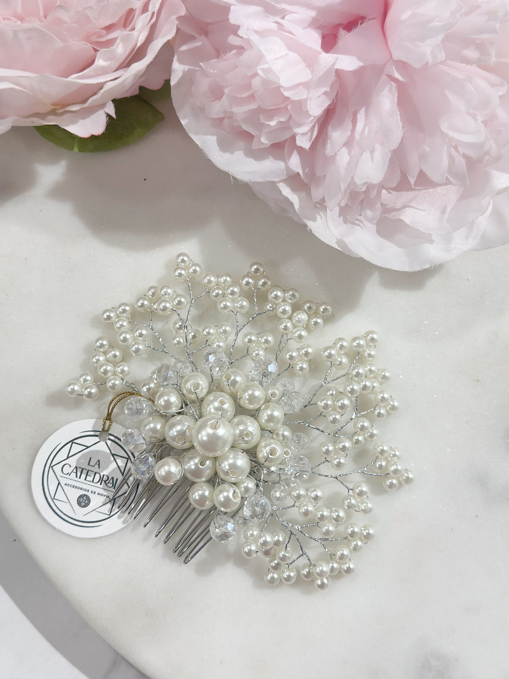 Peineta mediana clásica de perlas sintéticas con cristales rusos para quien buscan la elegancia con solo un toque sutil de brillo.