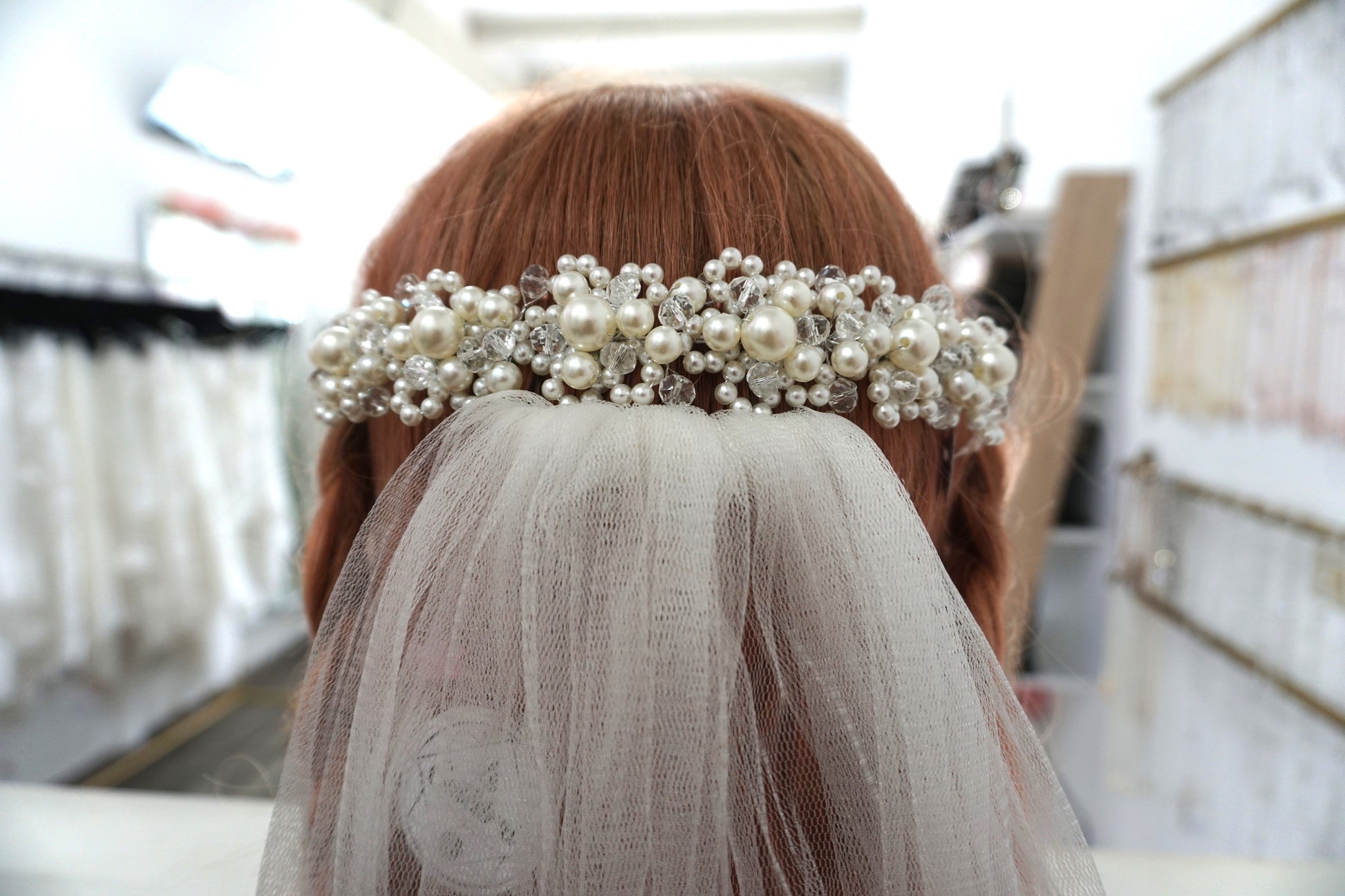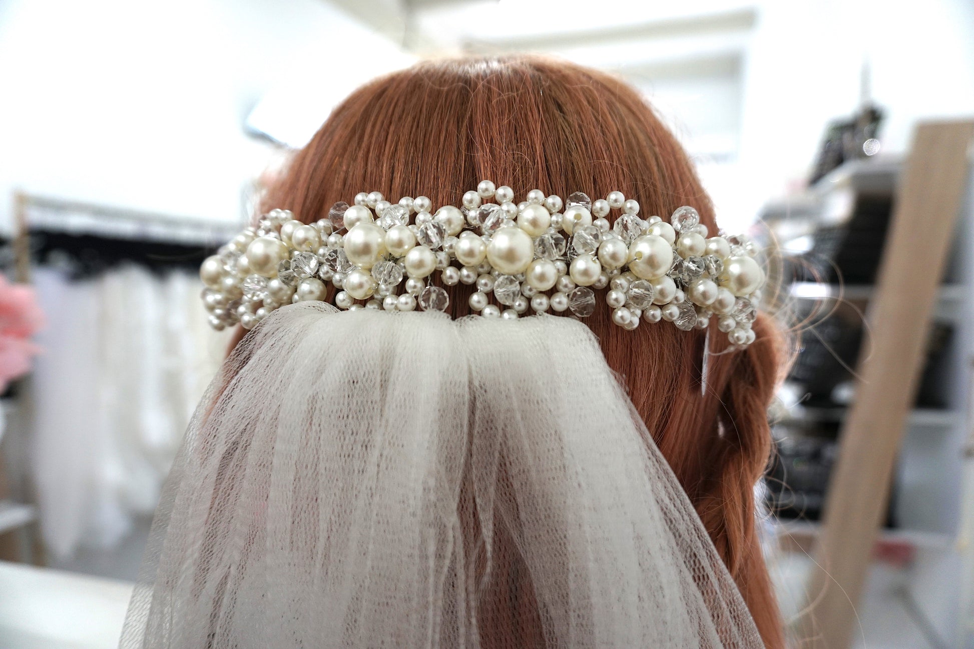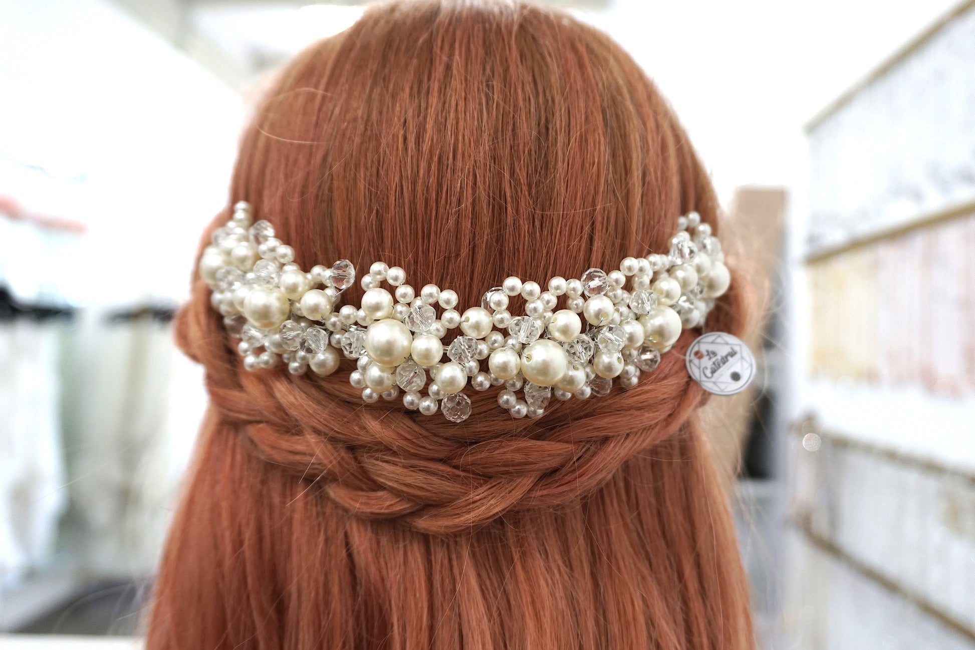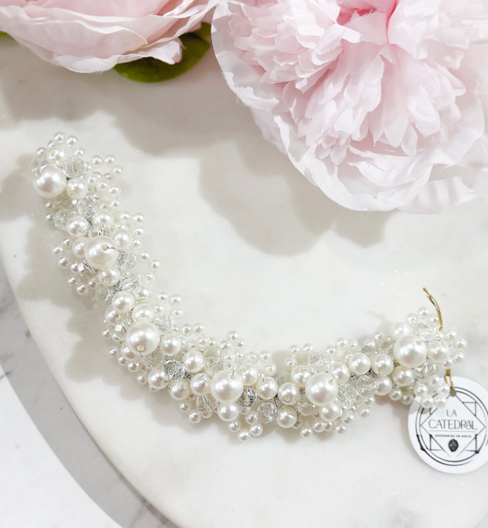 Peineta flexible de perlas sintéticas y cristales rusos que se amoldan perfectamente a cualquier estilo de peinado haciéndolo lucir elegante y sofisticado.