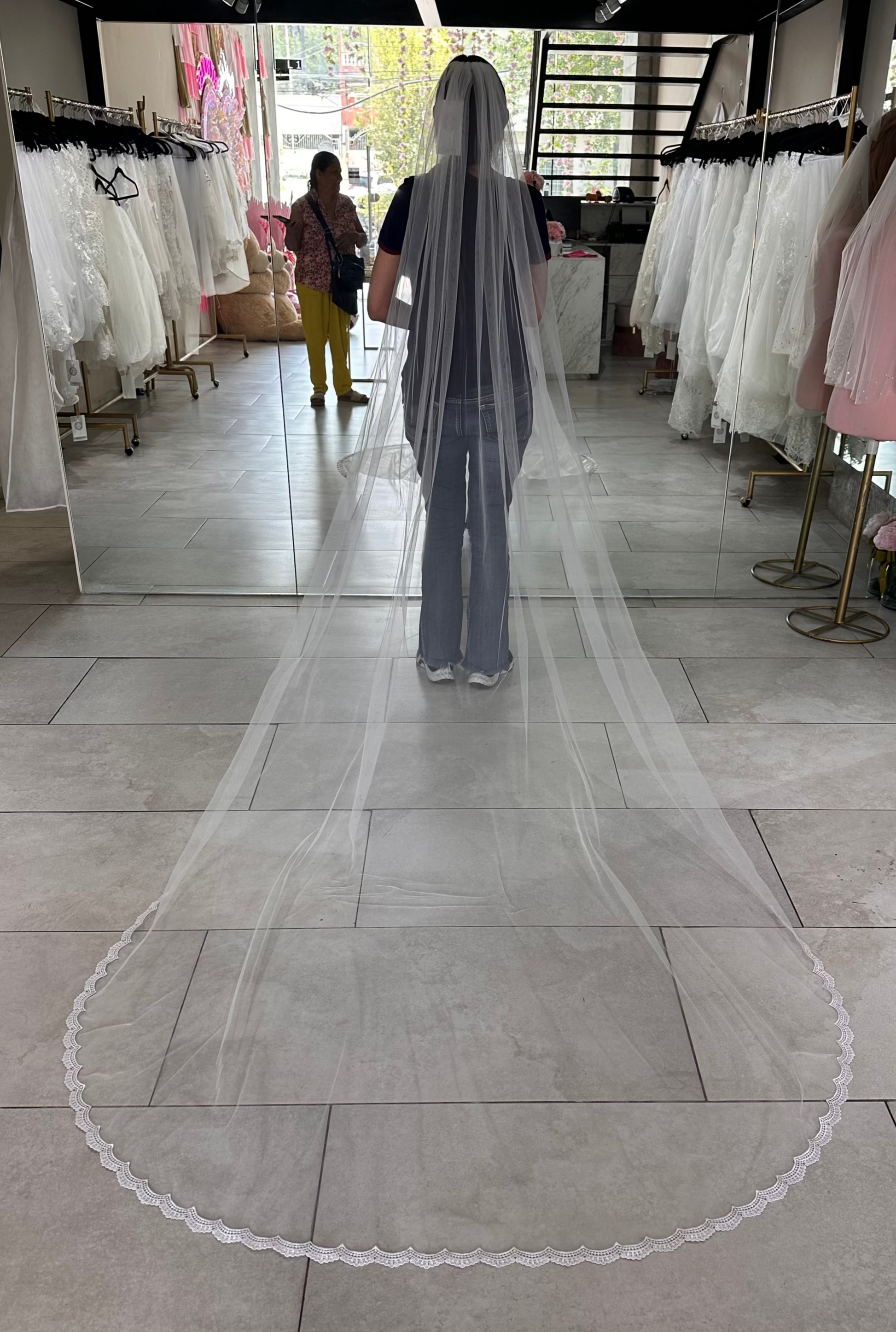 Nuestros exquisitos velos de novia catedral de 3 metros destacan pos su fluidez y elegancia, añadiendo un toque de sofisticación y romanticismo a tu look nupcial.