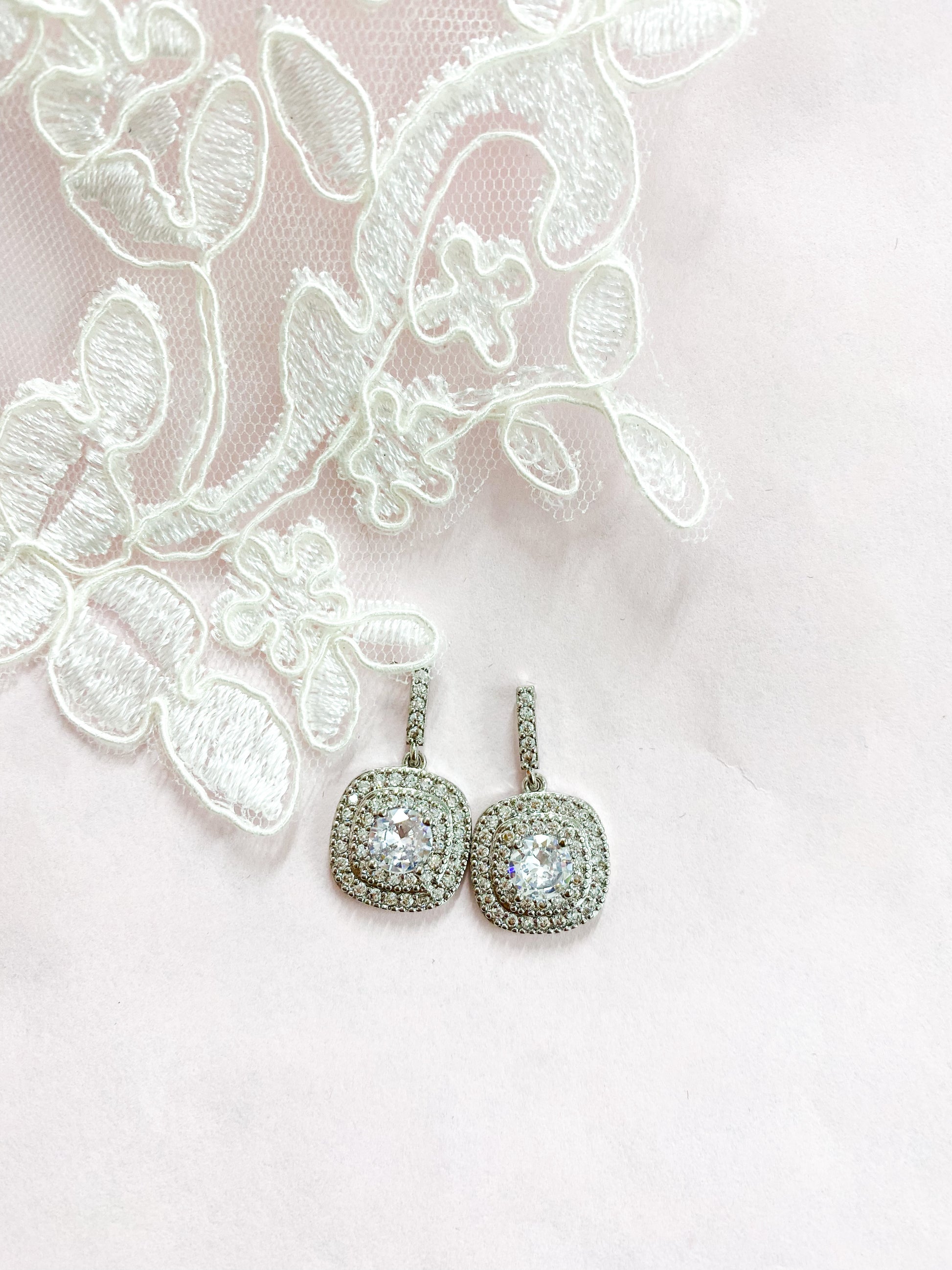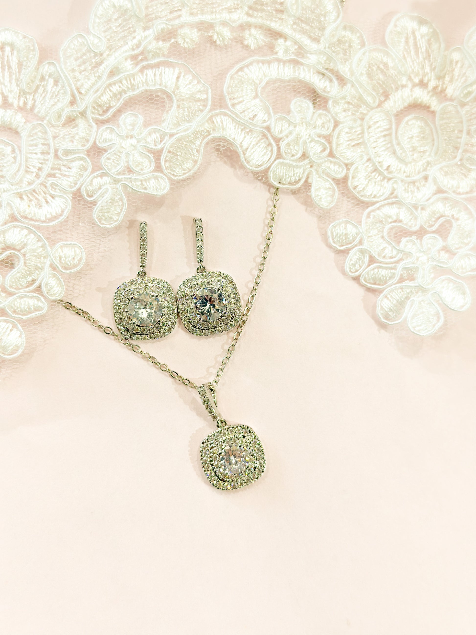 Material: Zirconias en forma de cuadrado con doble halo montadas en armazón con aleación de acero inoxidable en baño de rodio