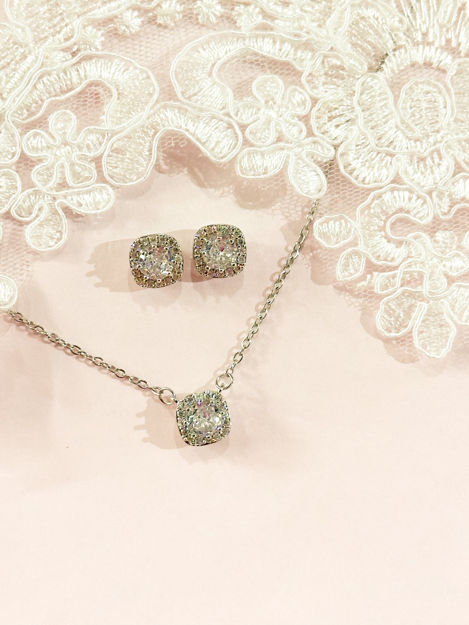 Material: Zirconia en forma cuadrada exquisita con halo en aleación de acero inoxidable en baño de rodio