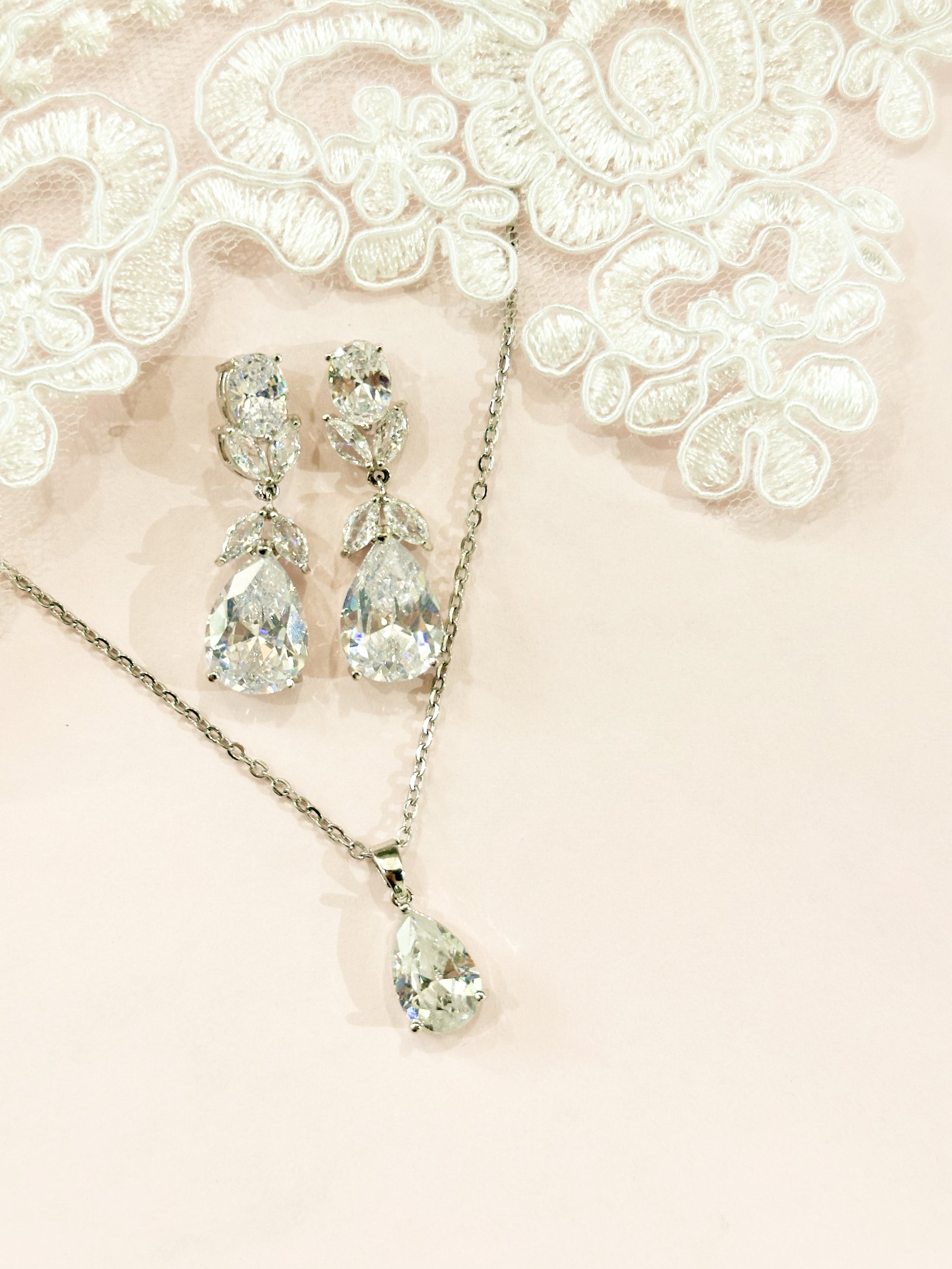 Set de aretes y gargantilla de Zirconia