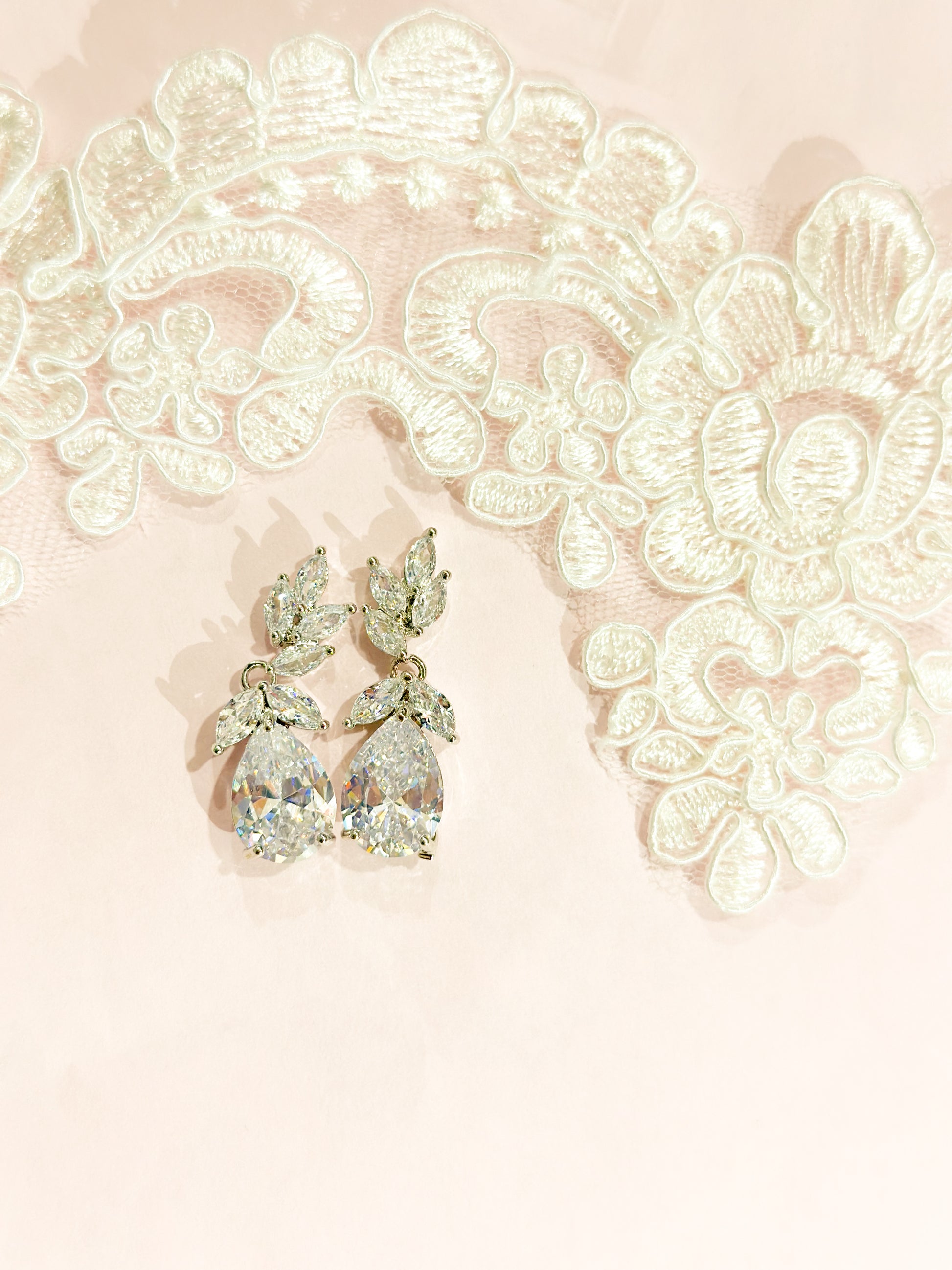 Material: Zirconia en forma de gota sin halo montadas en aleación de acero inoxidable en baño de rodio