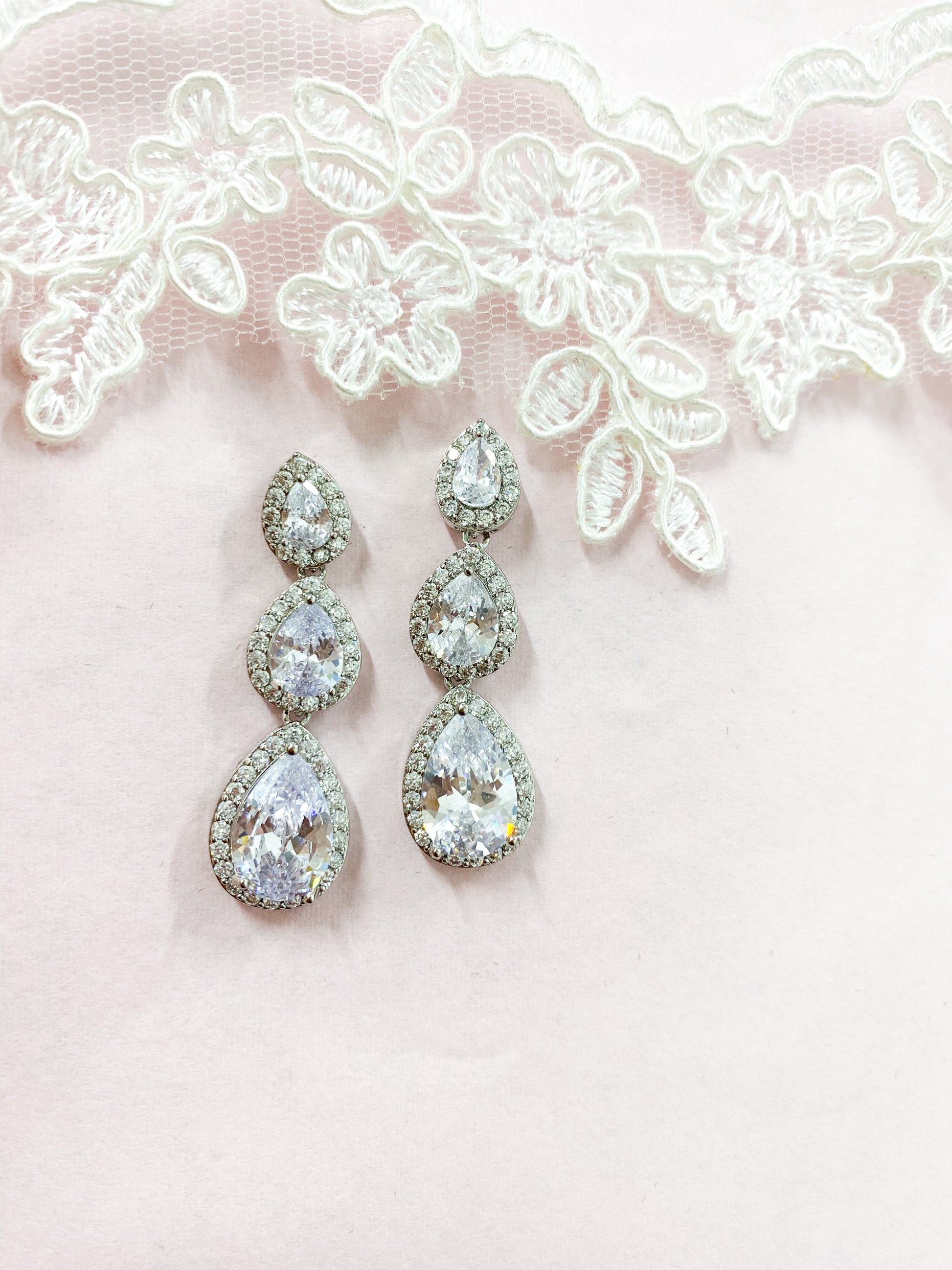 Material: Zirconias de triple gota con halo montadas en armazón con aleación de acero inoxidable en baño de rodio