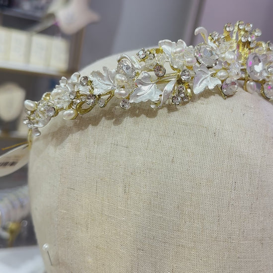 Tiara rígida especial para las novias que buscan un poco de todo ya que lleva cristales que te harán brillar pero también un toque de perlas elegantes y detalles que te haran lucir única.